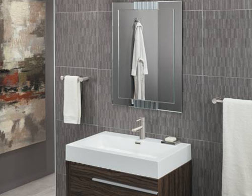 The Align bathroom collection is available in Chrome and LifeShine Brushed Nickel finishes and features stylish, cylindrical, geometric shapes to offer not only a stylish solution, but a functional one as well.